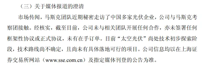 此外,受马斯克团队调研消息影响,今日太空光伏概念股全线走强。盘后,A股多家公司就太空光伏相关业务发布公告: