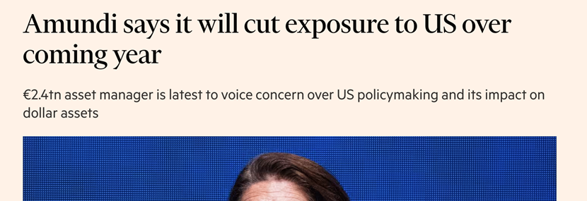 据Financial Times等外媒报道,欧洲最大资产管理公司东方汇理(Amundi)首席执行官Valerie Baudson近日表态,公司正主动减少对美元资产的投资布局,将资金转向欧洲和新兴市场,同时建议客户在未来一年内同步降低美元资产配置,并称若美国经济政策保持现状,美元将持续走弱。