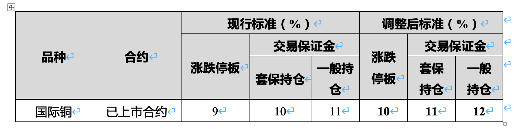 与此同时,上期所子公司上海国际能源交易中心也宣布,自2026年2月9日(星期一)收盘结算时起,将国际铜期货已上市合约的涨跌停板幅度调整为10%,套保持仓交易保证金比例调整为11%,一般持仓交易保证金比例调整为12%。