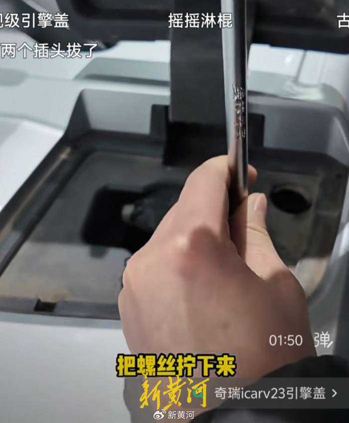 近日,一位二手车博主在短视频中吐槽,普通车的前舱盖用一个拉手就能打开,而他展厅里的奇瑞iCAR V23,却需要用两个型号的套筒、加长杆、撬棒、毛毡布等工具,先卸掉六个螺丝才能打开。截至2月7日,这段视频在一个平台已经有2.7万转发,1.1万评论。