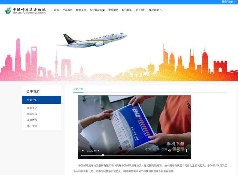 该公司官网显示,中国邮政速递物流股份有限公司是经国务院批准,由中国邮政集团公司作为主要发起人,于2010年6月发起设立的股份制公司。主要经营国内速递、国际速递、合同物流等业务,国内、国际速递服务涵盖卓越、标准和经济不同时限水平和代收货款等增值服务,合同物流涵盖仓储、运输等供应链全过程。