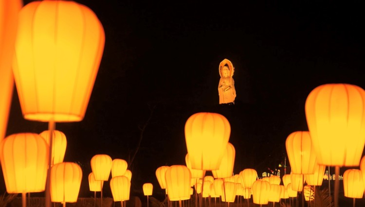 灯会尾声,游客可乘坐接驳车至音乐喷泉广场,欣赏108米海上观音夜间亮灯圣景,在宁静浩瀚的星空中圆满此次夜游光影心灵之旅。