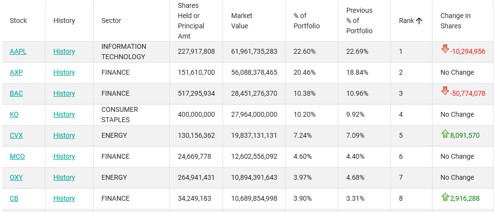 与财联社先前报道提到的一致,伯克希尔减持了苹果和美国银行,其中苹果的持股数下降了1029万股,约为Q3末的4.32%,但苹果仍是伯克希尔的最大持仓。