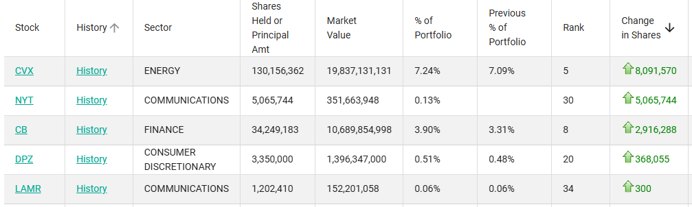 增持方面,伯克希尔Q4买入了809万股雪佛龙、291万股安达保险、36.8万股达美乐比萨以及300股拉马尔户外广告(股票代码:LAMR)。