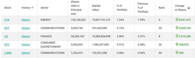 增持方面,伯克希尔Q4买入了809万股雪佛龙、291万股安达保险、36.8万股达美乐比萨以及300股拉马尔户外广告(股票代码:LAMR)。