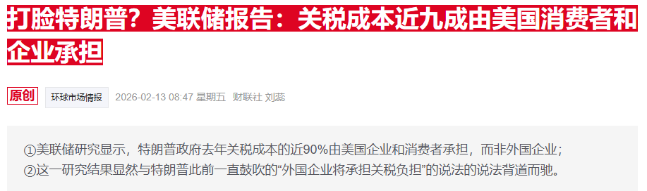 纽约联储上周公布的研究结果显示,美国政府2025年加征关税所产生的额外成本中约有90%由美国消费者和企业承担——与美国政府此前宣称的“关税由外国出口商承担”相悖。
