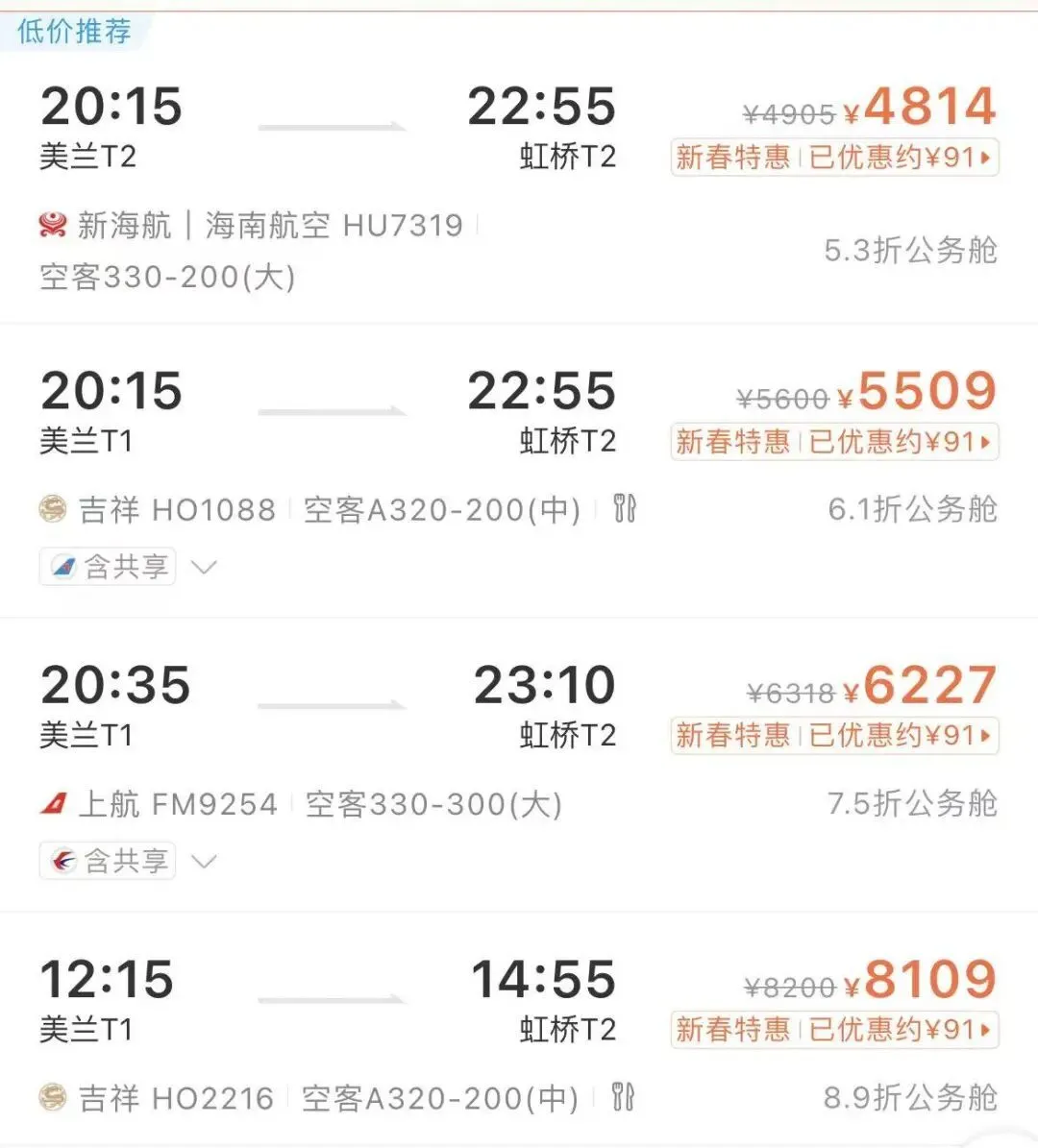 2月15日,有人提前查询春节返程机票时发现,节后从海口飞往武汉的机票价格已飙升至近6000元甚至超过8000元的公务舱,且余票寥寥。