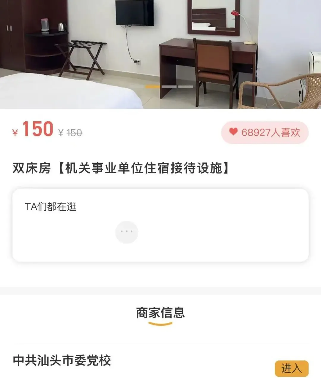 而2月14日,就在春节假期的前一天,汕头市突然官宣了一则消息:为缓解春节旅游住宿难题,汕头统筹协调部分机关事业单位的接待设施对外开放。首批放出479个房间、615个床位,涵盖党校培训用房、人才适用房。