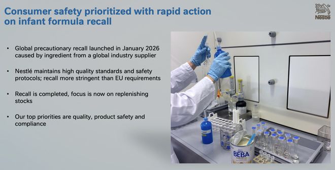 对于雀巢集团而言,影响2025年业绩的另一重要因素是在全球召回婴幼儿奶粉。今年1月,雀巢集团启动在包括中国在内的数十个国家或地区预防性召回部分批次婴幼儿配方奶粉。