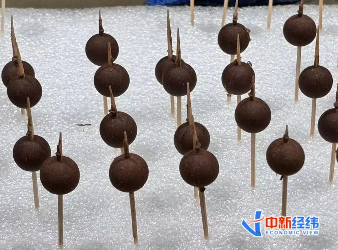 沈泽铭介绍,中药材经过清洗、晾晒后,经炮制去除燥性、激发药效。随后,工人手工将其研磨成粉,过筛得到细腻药末,将其与植物黏合剂印尼楠木粉混合。