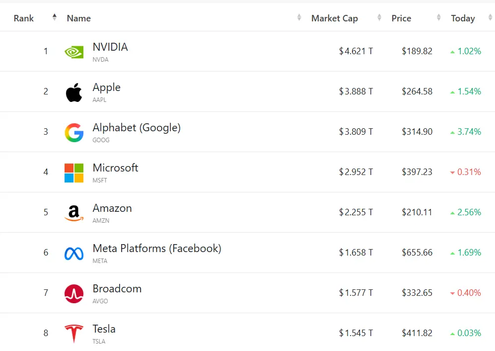 大型科技股多数走高,(按市值排列)英伟达涨1.02%,苹果涨1.54%,谷歌C涨3.74%,微软跌0.31%,亚马逊涨2.56%,Meta涨1.69%,特斯拉涨0.03%。