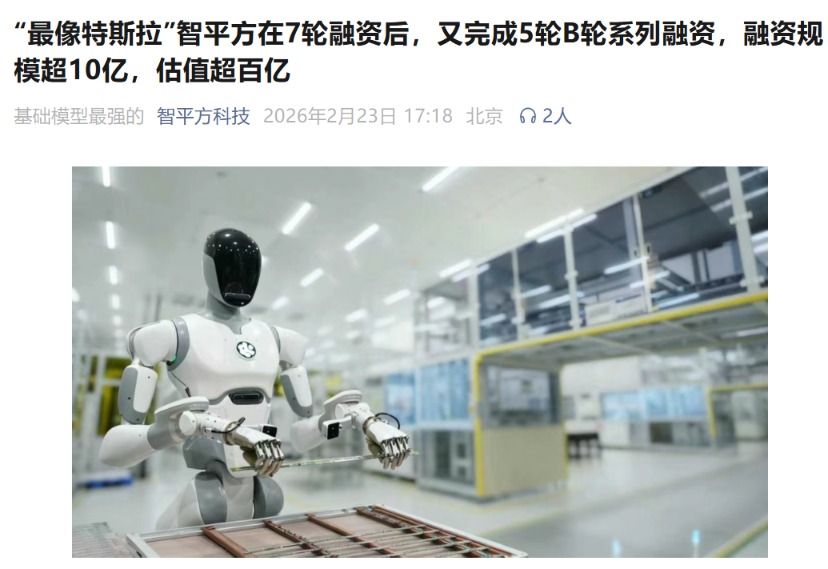 2月23日,通用智能机器人公司智平方官宣已完成B轮系列融资,融资规模超10亿元。至此,智平方的估值超过100亿元。