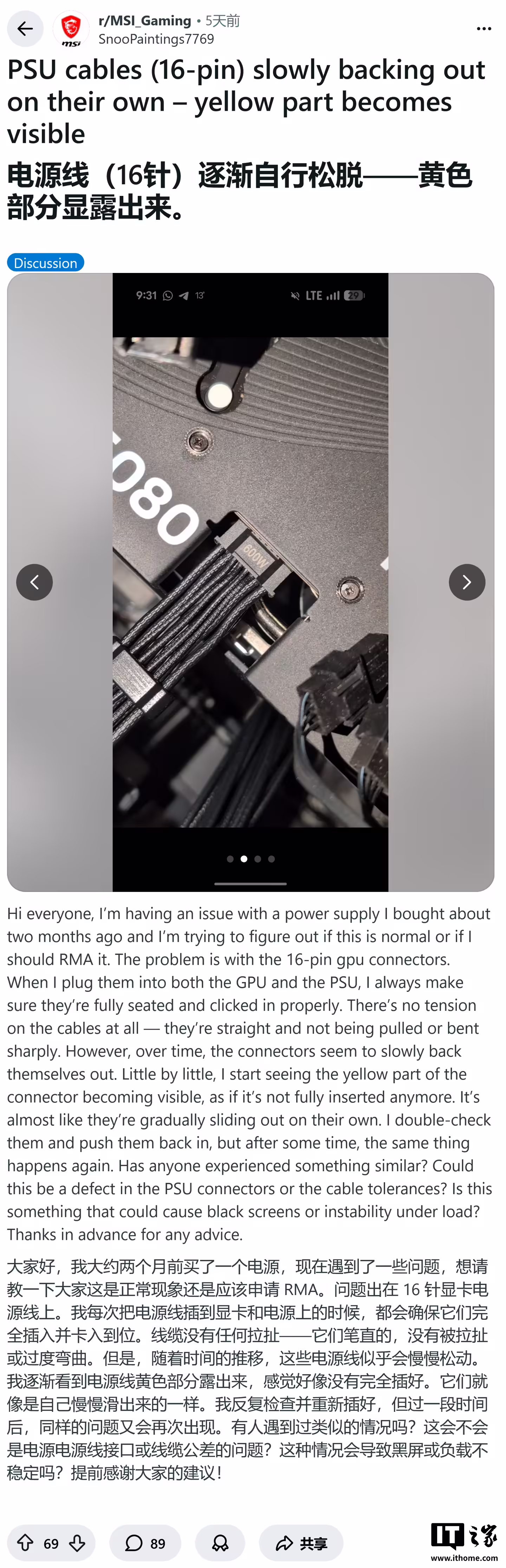 针对该起事件,微星官方已向首发帖用户确认其电源属于“缺陷”批次,这意味着市面上极可能存在更多具有相同隐患的电源产品。