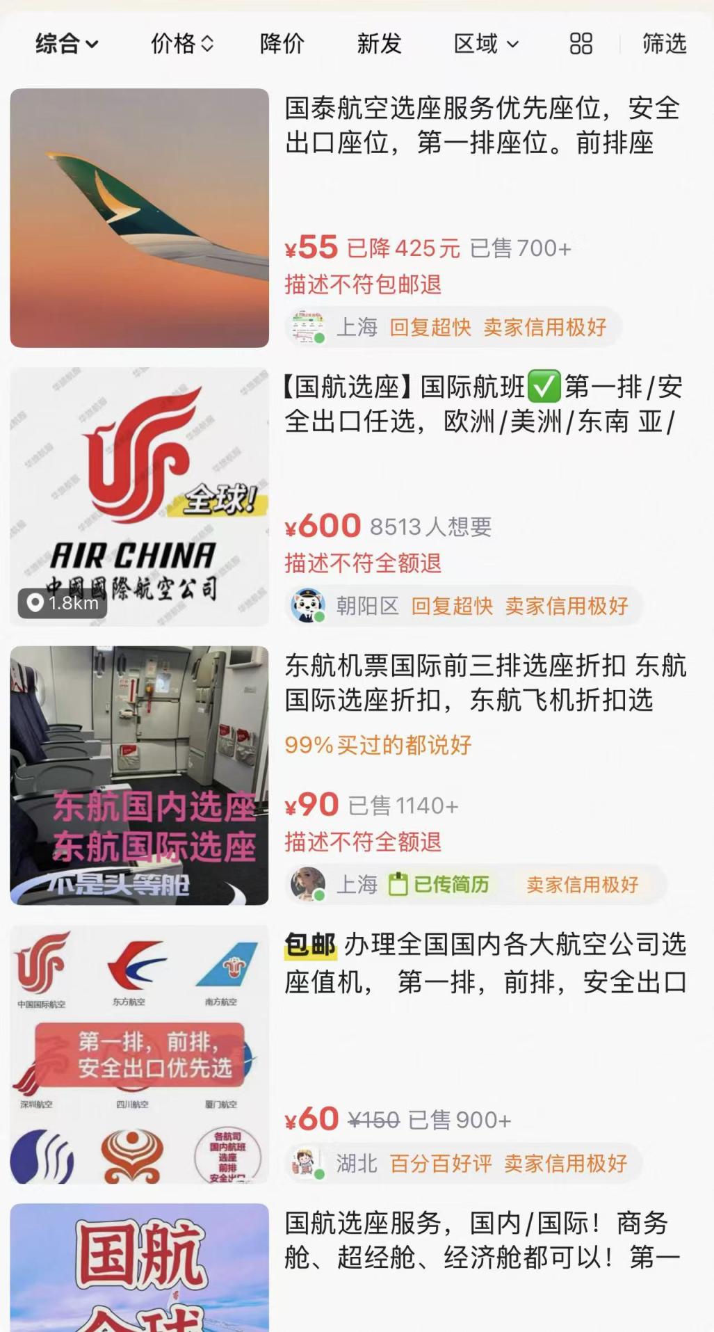 某二手平台,提供付费选座/升舱服务的中介比比皆是。