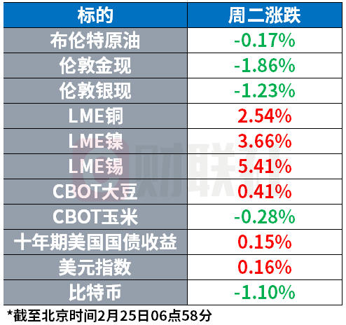 大宗商品方面,现货黄金在此前连涨4天的背景下回落,各类工业金属则在美国计划对关键矿产设立参考价的传闻影响下走强。