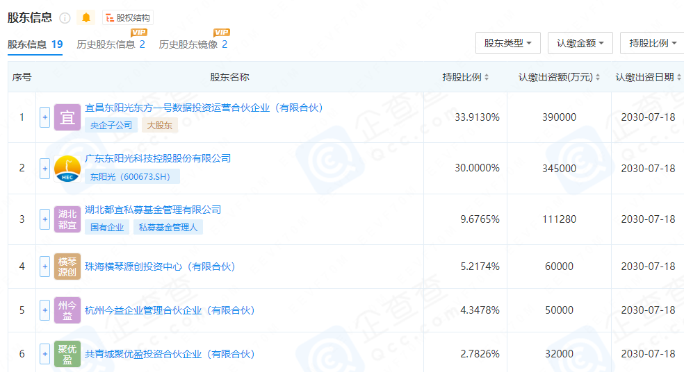 企查查数据显示,截至2026年2月25日午间,东阳光直接持有东数一号30%的股份,为该公司第二大股东,而东数一号的股东总数多达19名。