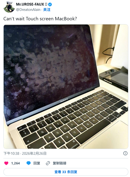 而苹果发布的视频中,一个人用手指画出苹果图表的动作似乎也在暗示触摸屏的出现。不过,从X上的网友评论来看,触摸屏并没有大受欢迎,有用户称并不想要一个为了迎合触摸屏需求而做出设计妥协的macOS系统设备。