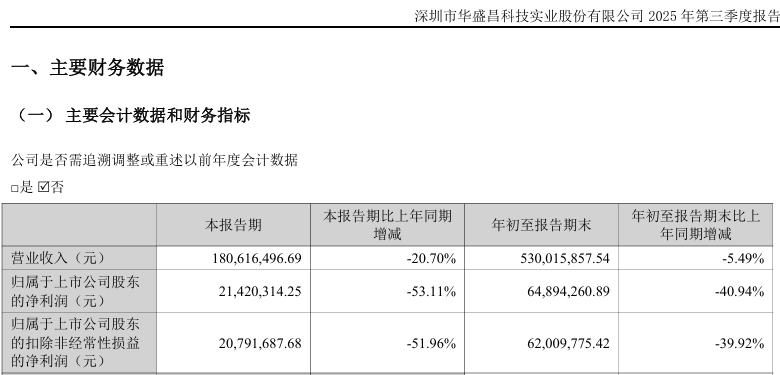 华盛昌的归母净利润、扣非后净利润,在2022年至2024年呈现持续上升态势,但2025年前三季度同比分别下降40.94%、39.92%。