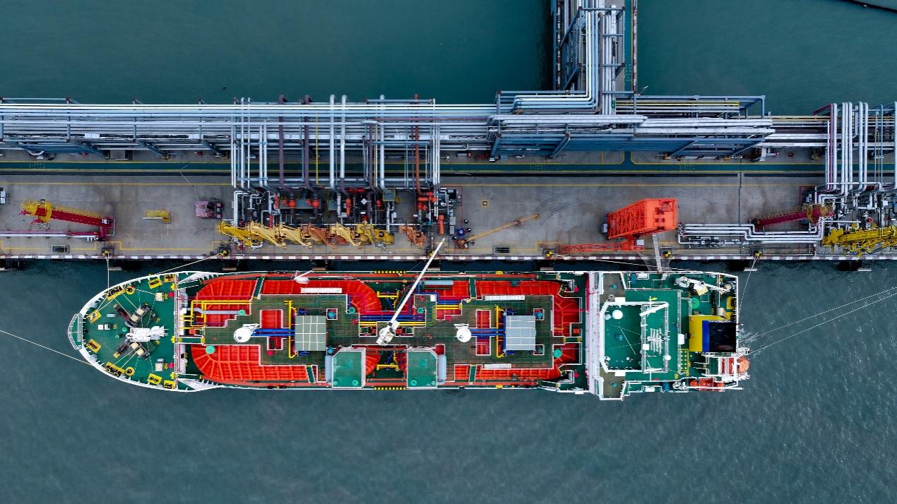 在江苏连云港徐圩港口,伴随着“咔哒”一声脆响,粗壮的输油臂与船载储罐精准对接。在低沉的泵送轰鸣与清晰的口令声中,液氨以精确控制的流速,通过保温管道注入液氨运输船的专用储罐。装载完毕后,这艘承载着“绿色新石油”的巨轮解缆启航,驶向韩国——全球首船绿氨正式出海,一条可再生能源“海上绿色通道”由此打通。