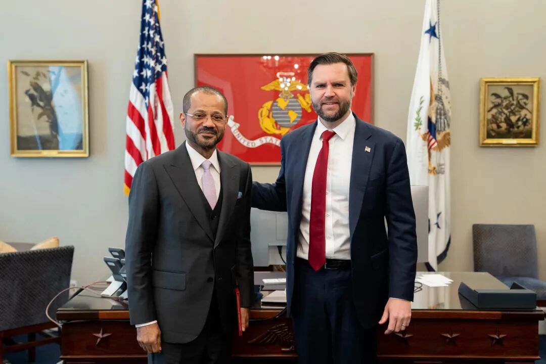 据此前报道,当地时间27日,阿曼外交大臣巴德尔在华盛顿会见美国副总统万斯。