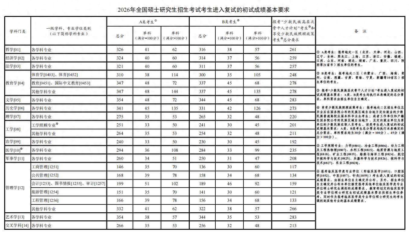 今天起,2026年全国硕士研究生招生考试初试成绩陆续可查。教育部发布《2026年全国硕士研究生招生考试考生进入复试的初试成绩基本要求》(国家分数线)。教育部要求各招生单位根据《2026年全国硕士研究生招生工作管理规定》,在国家分数线的基础上,自主确定并公布报考本单位的考生进入复试的初试成绩要求及其他学术要求。