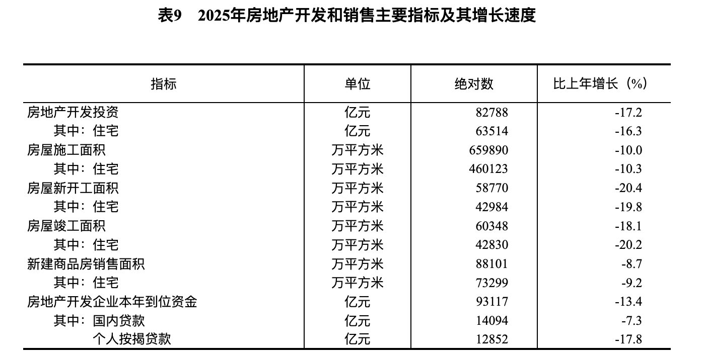 [49]根据房地产开发统计制度、统计执法检查等规定,对上年同期房地产开发投资、新建商品房销售面积等数据进行修订,2025年增速按可比口径计算。