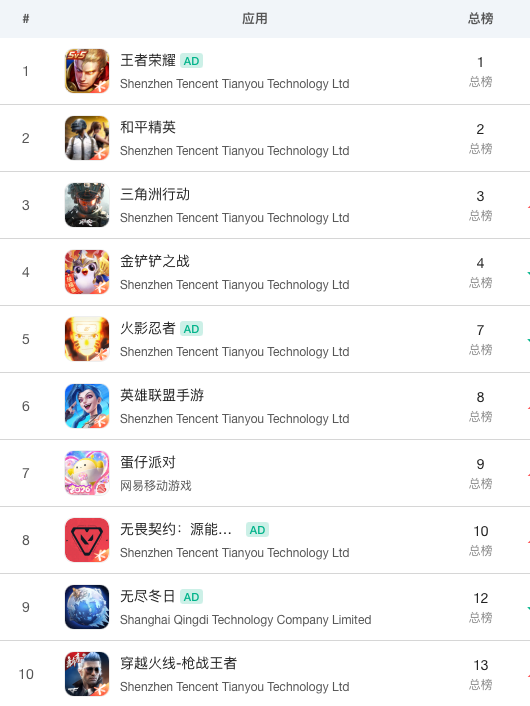 值得一提的是,春节期间腾讯系多款游戏表现惊人。今年除夕《和平精英》又创造了新纪录,DAU突破9000万。另外在春节期间,腾讯《金铲铲之战》《无畏契约手游》《火影忍者》《英雄联盟手游》《穿越火线手游》等多款游戏都冲进了国内iOS畅销榜前十。