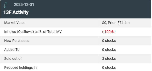 截至去年四季度末,该基金已不再持有任何需要在13F文件披露的美股多头仓位。