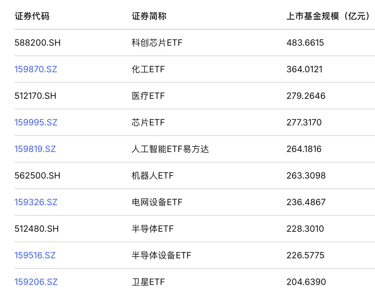 指数上涨带动相关ETF净值增长,也使得部分行业主题ETF的规模快速扩容。