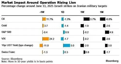 至于“崛起雄狮”和“午夜之锤”行动,典型的行情反应其实基本会出现在首次打击前约一周——市场提前预期行动。而在首轮打击确实发生后,市场往往会在一日内出现行情逆转:即黄金和油价出现“买预期卖事实”式回落,美股反而在袭击发生后反弹。