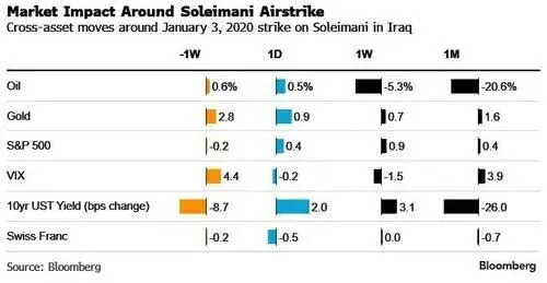 如下图所示,上述市场动态与苏莱曼尼遭空袭后的行情反应一致。