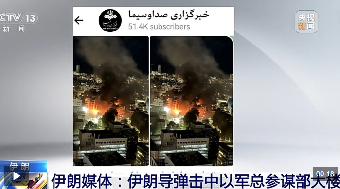 伊朗国家电视台还在3月1日公布了伊朗伊斯兰革命卫队导弹击中以军总参谋部大楼的画面,现场有火光,并冒出黑烟。