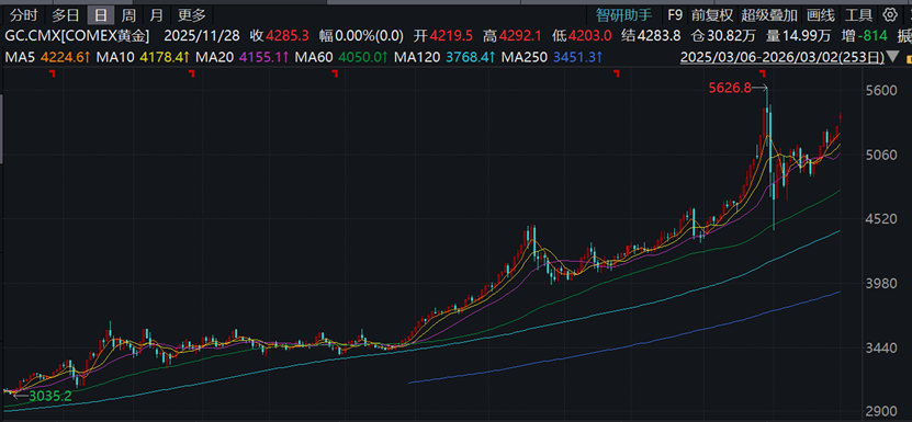 对此,兴业证券近日撰文指出,2026年1月,在地缘政治升温,欧洲抛售美债、日本财政担忧等助推下,黄金延续涨势。金价涨至5600美元/盎司后,黄金波动加大,1月30日和2月2日黄金分别触及20日和60日均线,清洗大量获利盘后,黄金展开震荡反弹。2月下旬国际地缘紧张局势则开始主导市场情绪。