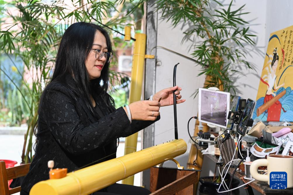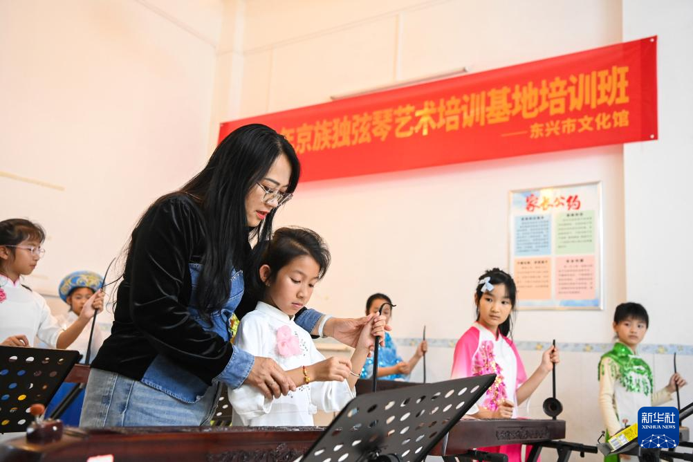 广西东兴市是我国海洋少数民族——京族的主要聚居地。全国政协委员苏海珍是一名京族女性,担任广西东兴市中等职业技术学校副校长,同时也是第三批国家级非物质文化遗产项目京族独弦琴艺术自治区级传承人。多年来,苏海珍一直致力于京族独弦琴的保护传承和创新发展。她利用寒暑假及周末走进东兴市的中小学、职业院校传授独弦琴艺术,同时积极争取教育部门支持,为学校配琴开课。针对京族文化、艺术、服饰等在传承中面临的困难,苏海珍筹备“京族人才培训基地”,积极推动京族文化与当地文旅项目结合。新华社记者 曹祎铭 摄 【责任编辑:王弘晢】