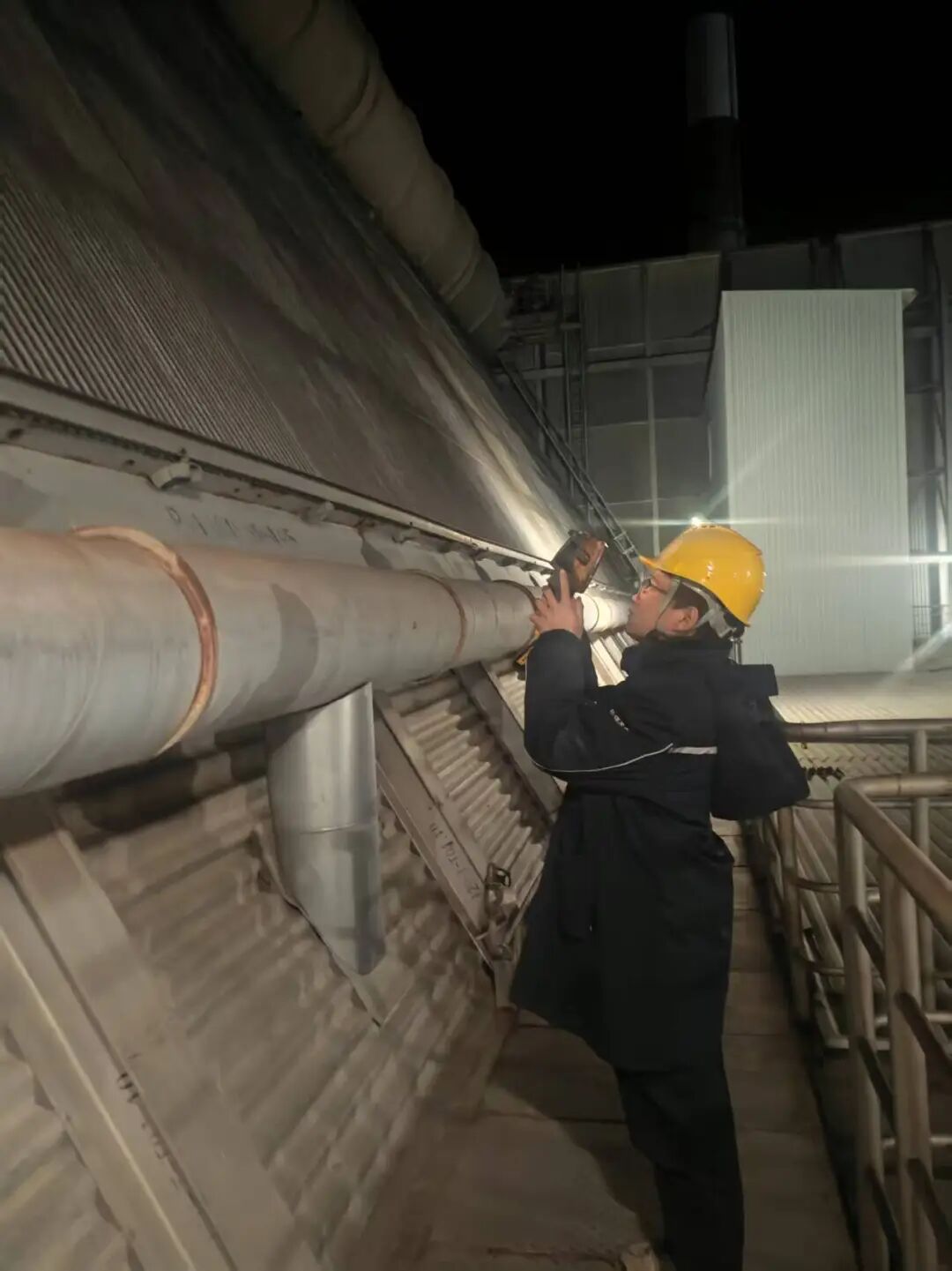 锅炉厂房里,巡检人员手持红外测温仪,对准每一个高压接头,直到屏幕上的温度数据稳稳当当才肯挪步;输煤皮带旁,另一组人正趴在设备上认真检查托辊运转,煤粉簌簌落下,沾满了深蓝色的防寒服。