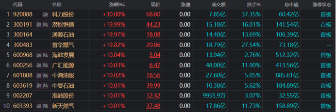 中石油量能历史第五,板块成交额历史第三