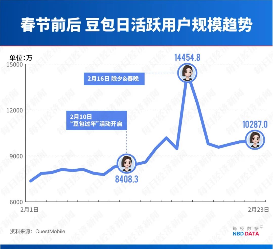 豆包App的日活较2月9日的8277.6万增加2009.4万。