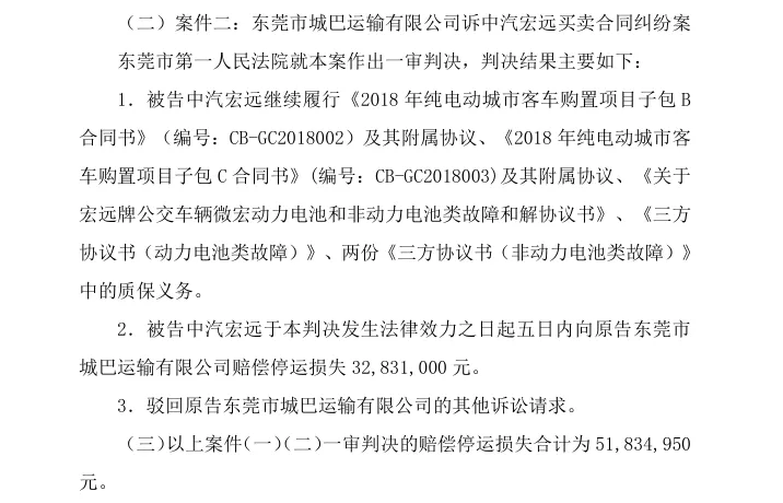 2026年2月9日及12日,龙洲股份先后公告了这三起重大诉讼的一审进展,法院最终作出了部分支持原告诉求的判决。判决明确,中汽宏远需继续履行合同中的质保义务,保障涉案车辆的后续维修维保相关事宜——这也意味着,中汽宏远需持续处理故障车辆的电池维修或更换问题,确保车辆能够正常投入运营。