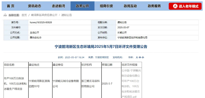 值得注意的是,招股书宣称,拟投入7.58亿元的前湾二号制冷设备智能制造生产基地建设项目将“实现核心零部件自主生产”。然而,官方披露该项目的环评报告却写着:压缩机、蒸发器、电机、冷凝器等均为“外购零件”。