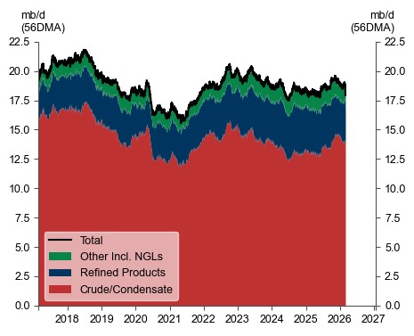 高盛在周日发布的一份最新报告中指出,2025年经由该海峡出口的原油平均达1340万桶/日,凝析油20万桶/日,成品油350万桶/日,天然气液及其他液体140万桶/日。沙特阿拉伯、伊拉克和阿联酋三国在2025年通过霍尔木兹海峡出口的石油总量达1310万桶/日,中国是主要目的地。