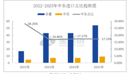霍尔木兹海峡承担全球约 30% 海运原油与 20% LNG 贸易,海峡关闭加剧市场对能源及化工品供应链中断的担忧。2022-2025年,丁二烯进口量逐步提升,中东货源在总进口中占比约16%-28%,是远洋船货补充渠道之一,但近年来中东占比较前期有所缩减。从2025年丁二烯进口结构来看,自中东地区(伊朗、阿曼、沙特)进口量在9.39万吨,进口占比在17.33%,而占据进口最多的仍是韩国,进口占比在34.07%,由此可以看出,此次地缘冲突对国内丁二烯有明显影响,但非决定性因素,若冲突持续发酵,或导致中东货源船期延误,到港受阻,进而推高进口成本以及国内市场价格。