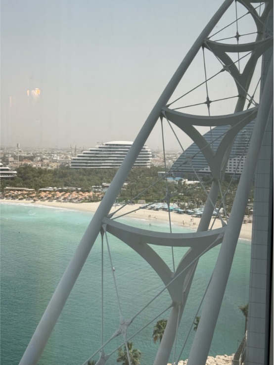 北京时间3月2日,15:27、当地时间11:27,沈女士透过帆船酒店房间拍到的海滩。受访者供图