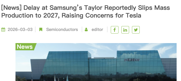 据悉,该工厂计划生产特斯拉AI5和AI6芯片,三星与特斯拉签订了数十亿美元的合同。若投产推迟情况属实,可能会对包括特斯拉在内的主要科技客户造成影响。