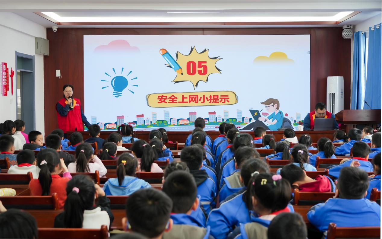活动现场,服务队队员化身“电力安全老师”,结合小学生的认知特点,摒弃专业晦涩的术语,用通俗易懂的语言和贴近生活的案例,为孩子们讲解日常用电安全知识。从“湿手不碰插座”“不随意拉扯电线”等基础常识,到触电后的正确自救与求助方法,队员们娓娓道来,还通过趣味提问、互动答疑的形式,调动孩子们的参与积极性。与此同时,队员们结合当下小学生日常使用电子产品的场景,同步普及网络安全小知识,向每位学生发放了图文并茂的网络安全宣传手册,告诉孩子们不随意点击陌生链接、不向陌生人透露家庭住址和家长联系方式、不沉迷网络游戏,教会孩子们辨别网络诈骗、保护个人信息的小技巧,让安全用电与网络安全知识一同在轻松的氛围中入脑入心,帮助孩子们树立起全方位的安全意识。