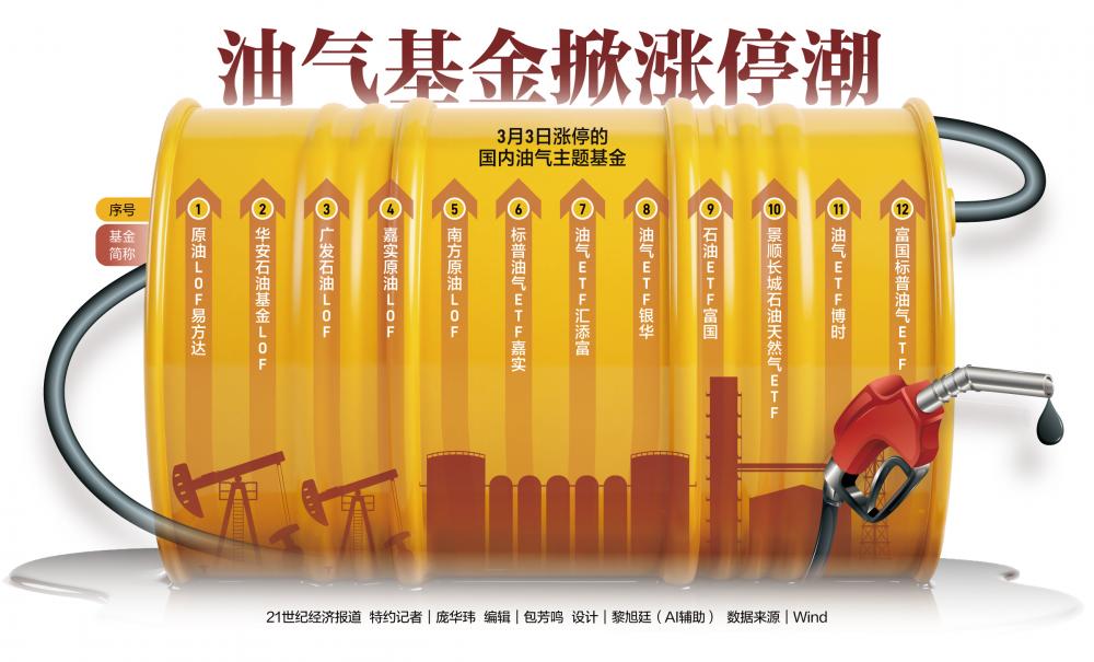 过去两个交易日,中东地缘冲突引爆了油气狂潮。中国石油、中国海油、中国石化这“三桶油”罕见地历史首次连续两日集体涨停,19只油气主题基金在3月2日有17只封板,3月3日再度有12只涨停。