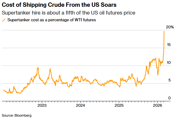 在历史上,从美国向亚洲运输原油的成本从未像眼下如此昂贵……