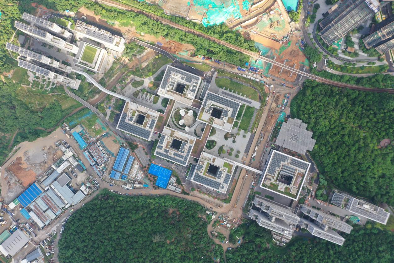 深圳大学城国际校区(一期)坐落于广东省深圳市南山区桃源街道白石岭片区,总建筑面积约19万㎡,是“广深港澳科技创新走廊”的核心节点。学院扎根中国,立足深圳,融会中外,致力于成为展示“世界水平,中国气派,岭南特色”的教育新典范,建造与自然相和谐的近零碳校园。