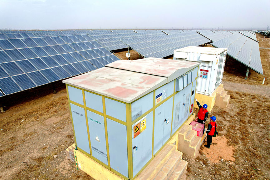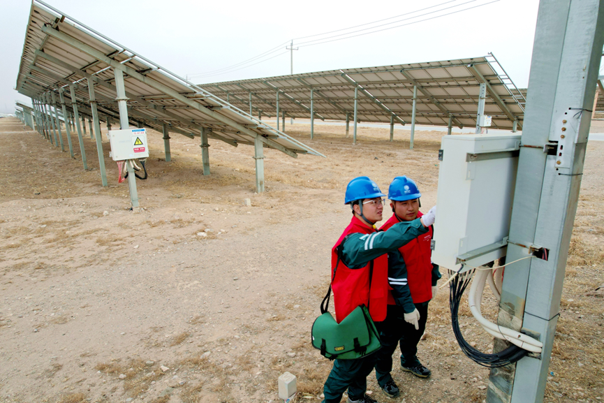 2026年3月4日,在宁夏银川市永宁县闽宁镇原隆村光伏养殖园区,国家电网宁夏电力(闽宁山海情永宁)共产党员服务队队员正在开展用电检查,提供技术指导,助力能源绿色发展。