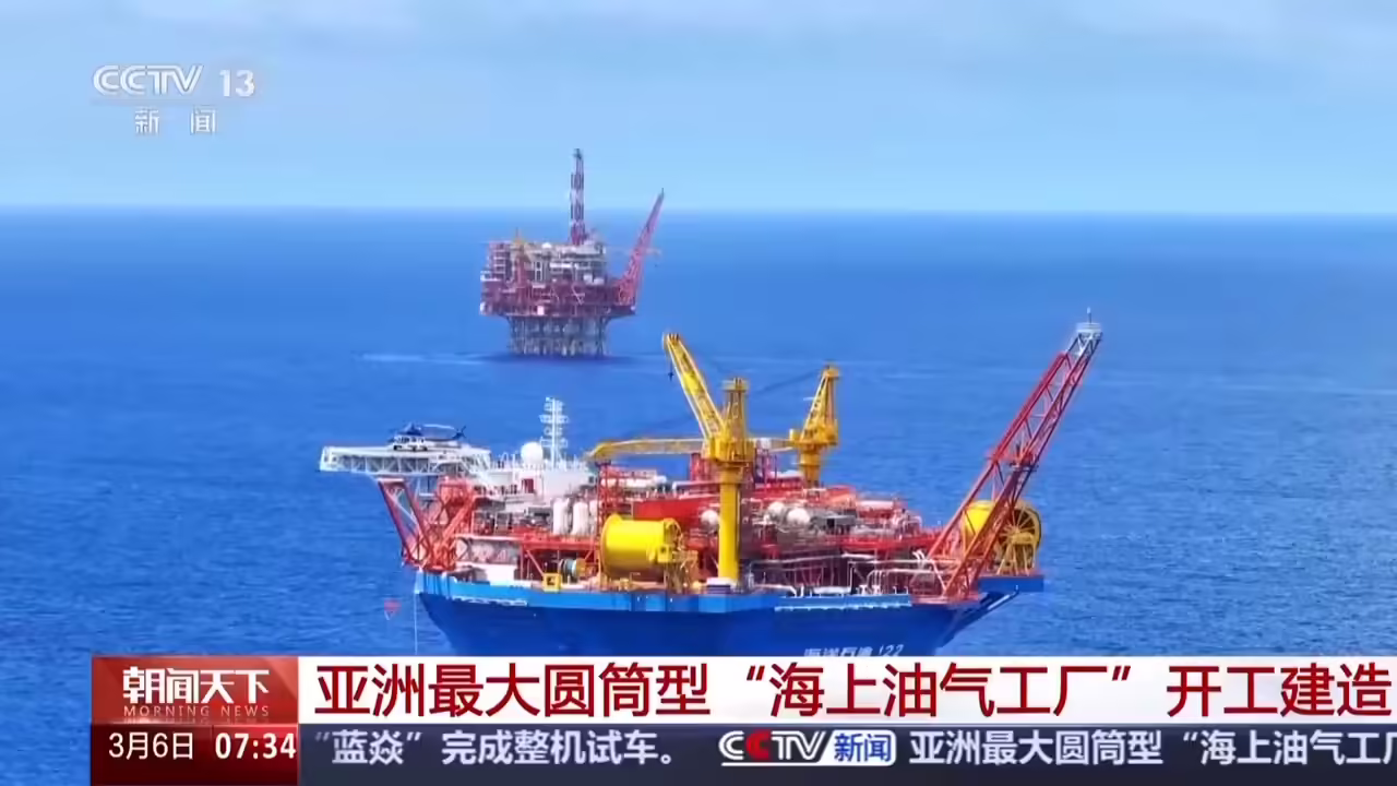 据央视报道,我国自主设计建设的亚洲最大圆筒型“海上油气工厂”—— 开平南油田开发项目圆筒型浮式生产储卸油装置今天(3 月 6 日)在青岛开工建造。