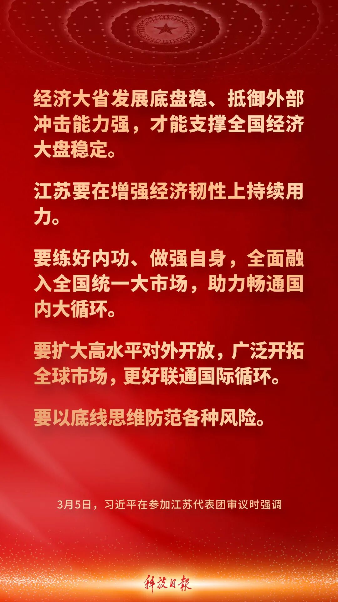 中共中央总书记、国家主席、中央军委主席习近平5日下午在参加他所在的十四届全国人大四次会议江苏代表团审议时强调——